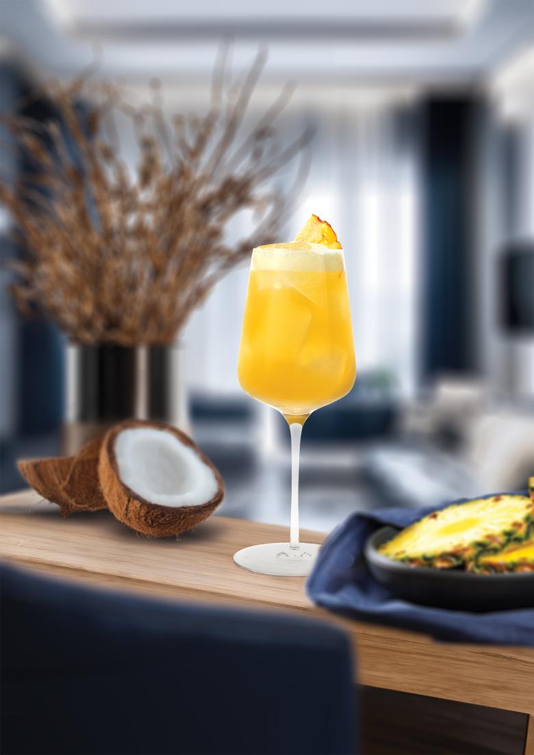 Všechny ingredience protřepejte v šejkru s ledem, přelijte do sklenice a ozdobte kouskem čerstvého ananasu. El Clásico Salted Caramel lze zakoupit na webu www.1er.cz za cenu 265 Kč.