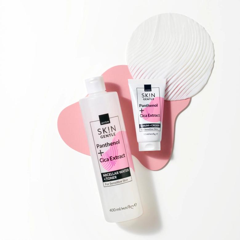 Zjemnění a zklidnění – panthenol a výtažek z pupečníku asijského (cica) jsou ideální pro citlivou pokožku, které dodají jemnou péči a hydrataci. Vyberte si čisticí micelární vodu a tonikum 2 v 1 (99,90 Kč) a pleťové sérum a krém 2 v 1 pro citlivou pleť (149,90 Kč).