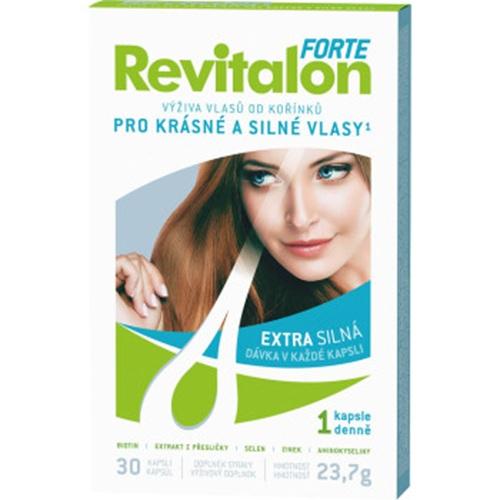 Kapsle Revitalon Forte s extra silným složením jsou vynikajícím řešením pro vaše vlasy. Jejich receptura je sestavena s důrazem na výživu a posílení vlasů, nehtů i pokožky. Obsahuje 18 účinných látek v jediné kapsli, jejíž každodenní užívání zajistí příjem těch nejdůležitějších látek pro vaše vlasy: