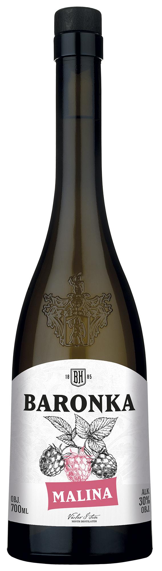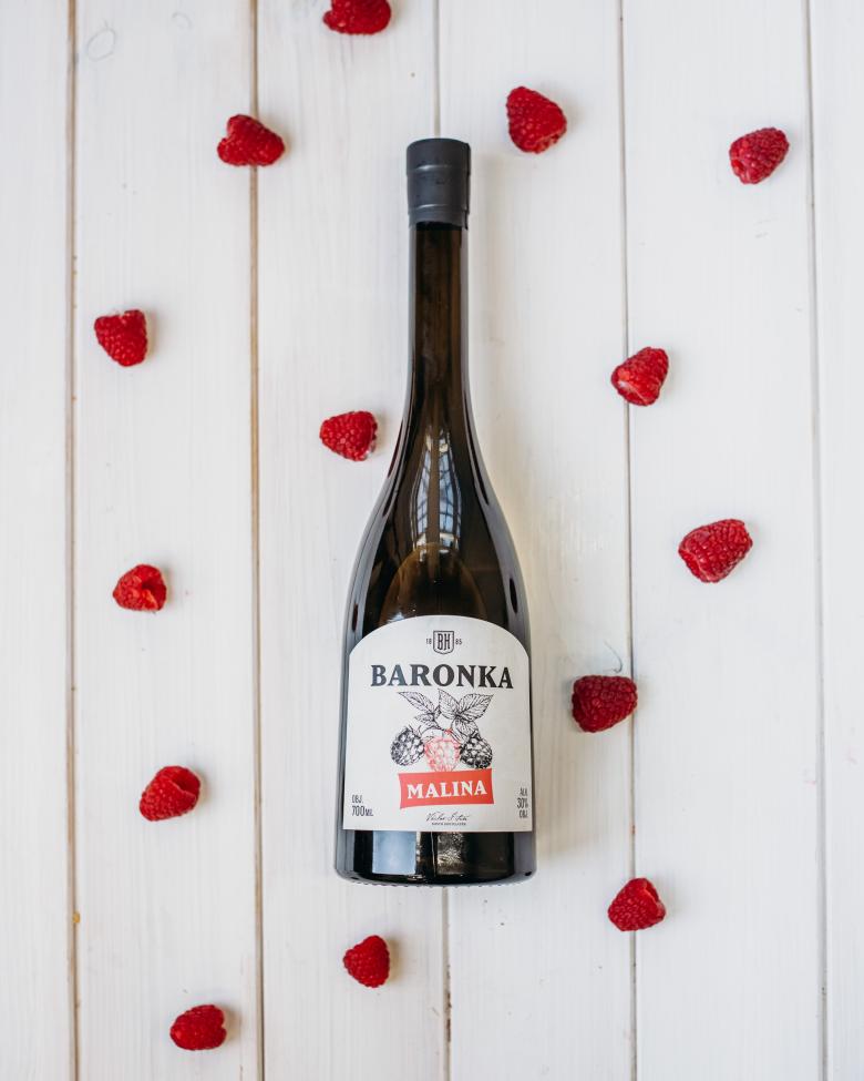 Baronka Malina je pravou dámou, která se skvěle hodí ke každé příležitosti. Má nižší obsah alkoholu (30 %), zachovává si však zcela harmonickou chuť ovoce a tím je vhodná pro všechny. Zralé a pečlivě sbírané plody malin skvěle ladí s péčí a pílí, jakou Václav Šitner své práci věnuje. Typická malinová chuť a vůně se rozvinou ihned po prvním kontaktu s douškem této malinové krásky.