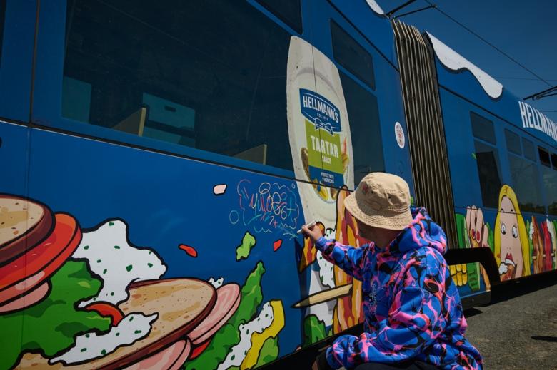 Street artista Yudoe 06, známý svým inovativním přístupem k umění, vytvořil design, který nejenže odráží jeho osobitý styl, ale také rezonuje s hodnotami Hellmann's. “Spolupráce s Hellmann’s na podobě tramvaje pro mě byla skvělou příležitostí propojit streetart s veřejným prostorem v nečekaném formátu. Bavilo mě přenést energii a nespoutanost pouličního umění na tak výrazné médium, jakým je tramvaj, která denně projíždí městem a oslovuje tisíce lidí. Jsem rád, když značky dávají prostor autentickému vizuálnímu jazyku a nebojí se originality,” vysvětluje autor.