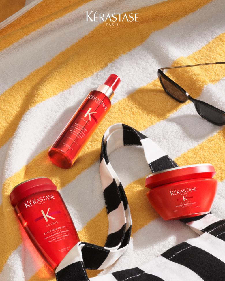 Letní řada Soleil od Kérastase je speciálně vytvořená tak, aby chránila vlasy před sluncem, solí i chlórem. Obsahuje např. šampon Bain Après-Soleil s kokosovou vodou, který jemně čistí, zklidňuje a hydratuje, nebo lehký ochranný olej Huile Sirène pro výživu a lesk.