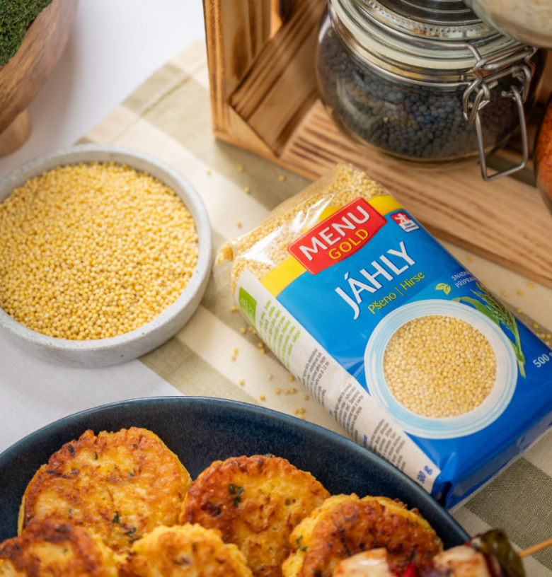 Jáhly spaříme horkou vodou a vložíme do vroucí osolené vody. Vaříme cca 15 minut do měkka. Zbytek vody scedíme a jáhly necháme vychladit. Poté k nim přidáme najemno nastrouhanou mrkev a cuketu, vejce, nadrobno nakrájenou cibulku, rozdrobené kvasnice a dochutíme solí a pepřem. Dobře promícháme a zahustíme hladkou moukou. Z těsta vytvarujeme placky o tloušťce cca 1,5 cm, které necháme 25 minut na teplém místě vykynout a poté je pomalu smažíme dozlatova z obou stran. Na tzatziki nastrouháme okurky, které osolíme, necháme 15 minut odpočinout a poté z nich vymačkáme vodu. Jogurt osolíme, opepříme a vmícháme do něj olivový olej a nasekaný čerstvý kopr. Vše spojíme a ochutíme česnekem a citrónovou šťávou. Maso na špízy nakrájíme na větší kostičky, osolíme a pepříme. Dále si nakrájíme Papriku, červenou cibuli i klobásu nakrájíme na zhruba stejně velké části. Maso a zeleninu střídavě napichujeme na špejli. Špízy opékáme ze všech stran na
