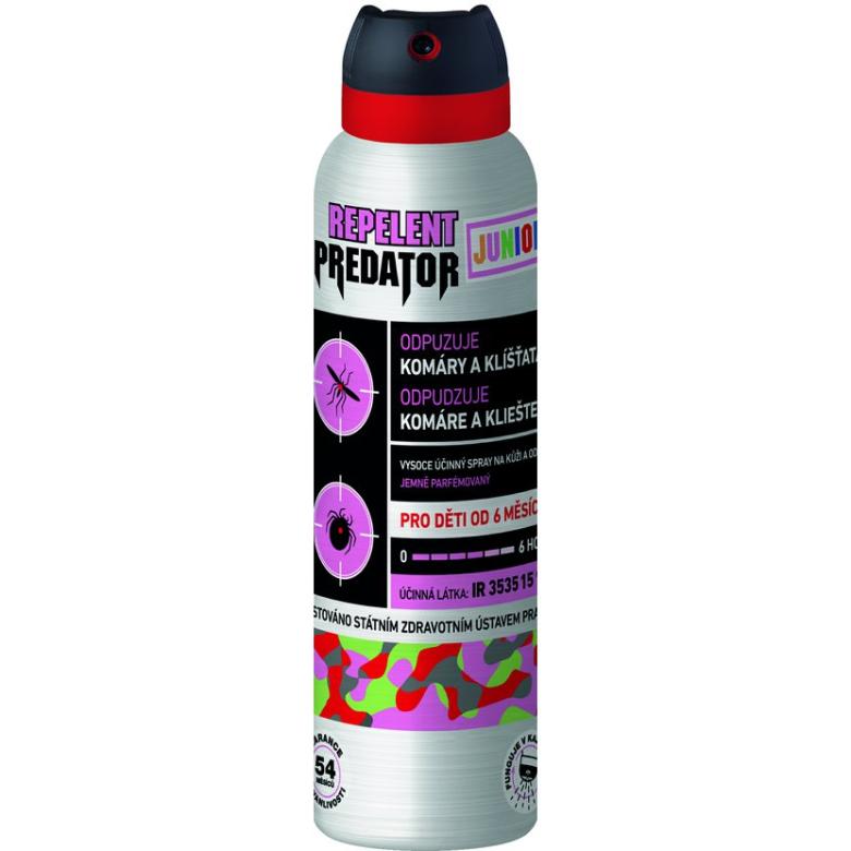 Predator Repelent Junior je účinný repelent, který působí proti komárům, klíšťatům a muchničkám. Lze jej aplikovat jak na pokožku, tak na oděv. Účinnost repelentu trvá po dobu 2-4 hodin a je vhodný pro děti už od 3 měsíců i osoby s citlivou pokožkou. Aplikace možná ve svislé i vodorovné poloze. Doporučená cena 150 ml je 219 Kč