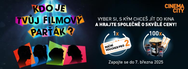 Cinema City spustilo jarní soutěž s názvem „Kdo je tvůj filmový parťák?“. Akce běží až do 7. března a je to skvělá příležitost, jak si užít filmy s tím nejlepším parťákem a zároveň získat atraktivní výhry. Stačí, když si vyberete svého oblíbeného filmového parťáka, pošlete mu pozvánku na některý z filmů z nabídky a tím se do soutěže zapojíte.